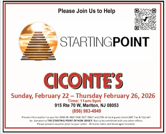 Ciconte’s Dine and Donate + Add to Google Calendar + iCal / Outlook export Date Sun. - Thu. - Feb 22 - 26 2026 Time 11:00 am - 9:00 pm Location Ciconte's 915 Rt. 70 W. Marlton, NJ 08053 Category EventsFundraisers