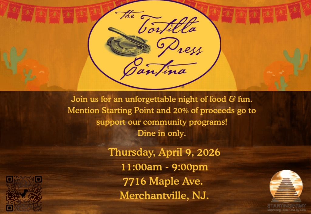 Dine and Donate + Add to Google Calendar + iCal / Outlook export Date Thu. - Apr 09 2026 Time 11:00 am - 9:00 pm Location The Tortilla Press Cantina 7716 Maple Ave. Merchantville, NJ Category EventsFundraisers