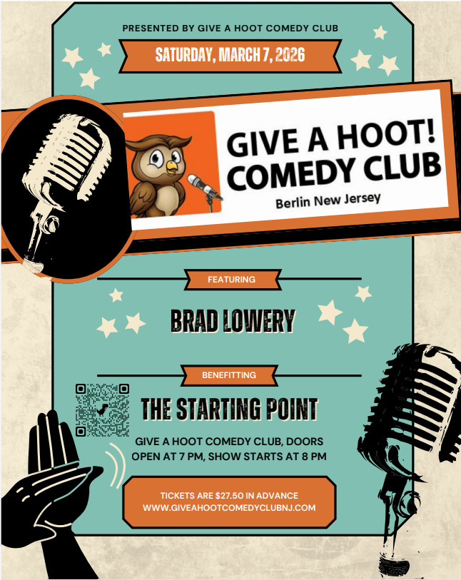 Give a Hoot! Comedy Club + Add to Google Calendar + iCal / Outlook export Date Sat. - Mar 07 2026 Time 8:00 pm Cost $27.50 More Info Buy Tickets Location Give A Hoot! Comedy Club 281 Berlin Cross Keys Rd. Berlin NJ 08009 Category Events