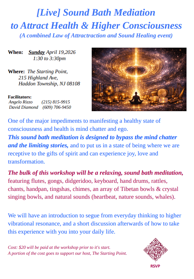 Live Sound Bath Meditation to Attract Health & Higher Conciousness + Add to Google Calendar + iCal / Outlook export Date Sun. - Apr 19 2026 Time 1:30 pm - 3:30 pm Category Meetings