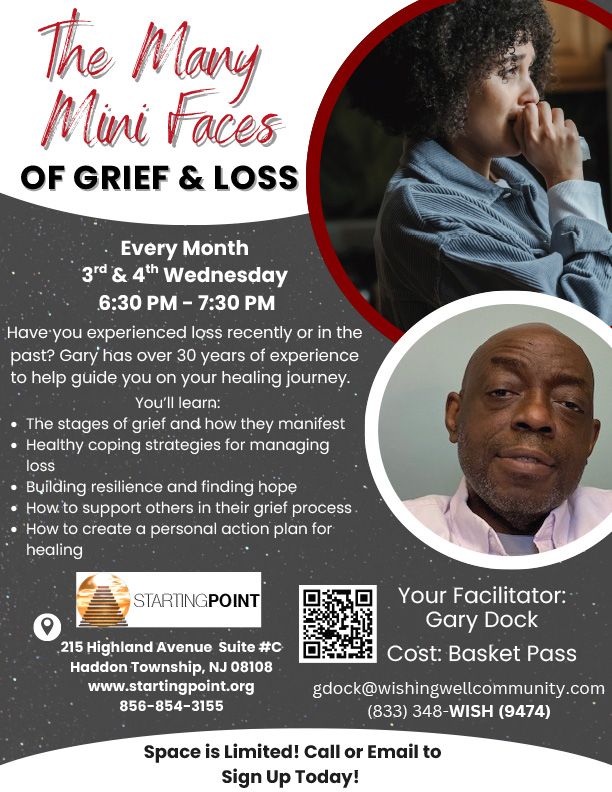 The Many Mini Faces of Grief and Loss The Many Mini Faces of Grief Wednesdays 3rd & 4th Week of Every Month 6:30pm to 7:30pm + Add to Google Calendar + iCal / Outlook export Date Wed. - Oct 15 2025 Time 6:30 pm - 7:30 pm Category Meetings